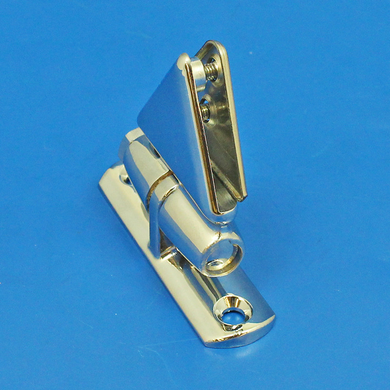 This attractive centre mount sun visor bracket was originally used on the MG Y Type, Morris MO Oxford, MM Minor and Wolseley 6/80. Also used on some MGAs. Friction can be increased by tightening the hex bolt on one end. The visor (excluded - customer supply) is clamped by a triangular back plate attached to the main body of the hinge by two raised head, slotted screws.