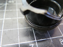 The nose piece was made from Delrin plastic. It's a great material--it's strong, stable, and machines well. Unfortunately, it normally doesn't glue well. The surface has to be treated with a special primer to activate it enough to accept a glue bond. After priming, I used a thick bodied CA glue.