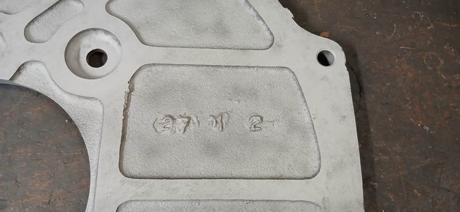 Okay, so sometimes a labor of love becomes a work of art. Not that anyone would ever see much of this when it's installed, but it was cute at the time. This is an engine rear plate for an MGA 1600 with the high starter position and the counterbored holes for the mounting bolts. These parts were normally flame cut from a flat plate, and were flat faced on both sides except for the counterbored holes for the bolt heads. This part was found with (not assembled) a 1960 Elva Courier which used the MGA 1600 power train and suspension parts. Notice the indentations in the face of the plate for lightening (both sides), indicating that this part was cast to shape rather than flame cut from plate stock. This saves considerable material (and machining) in manufacture and makes for a slightly lighter part. I do not know when the production changeover occurred, if this is a late production MGA part, a MGB 3-main bearing engine part, or something that was made special for the Elva to reduce weight.