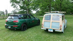Getting down to the fun stuff (well really it's all fun). One modern Mini, one vintage Mini Clubman woody wagon, one Morris Minor woody wagon. After all the drooling and voting, it was time for a short break, then back to the hotel for one more tech session. We got a little rain just as we were getting back to the hotel. Good timing. A lot of the show cars were tucked into the parking garage to be out of the weather.