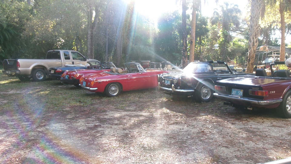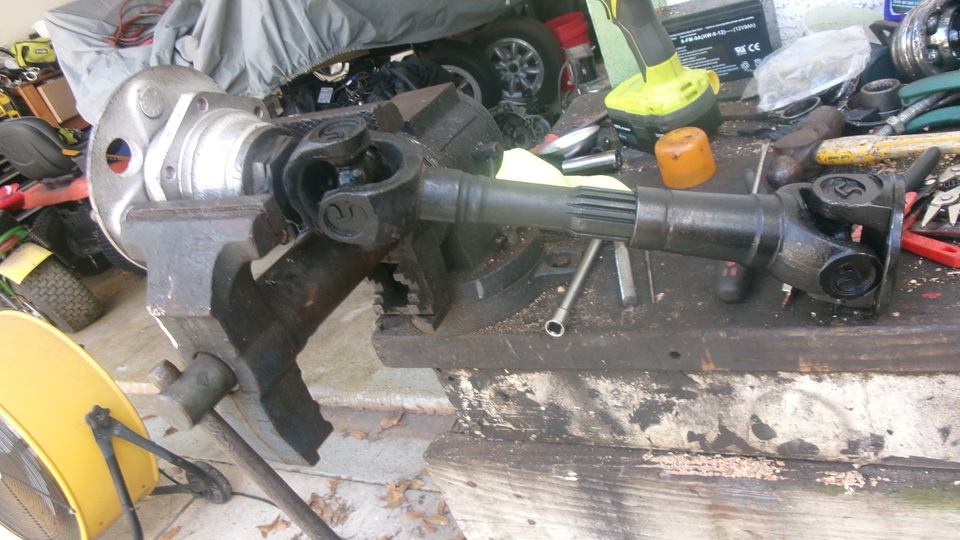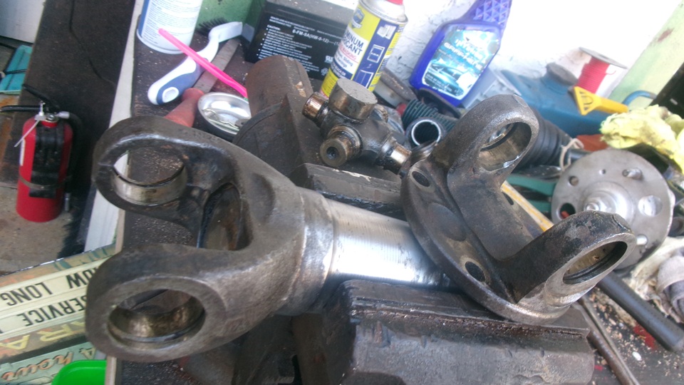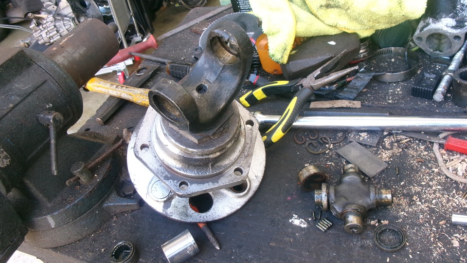 Tech Central in Bonita Springs, Florida, day after new years. Someone wanting to change four universal joints for rear suspension of a TR6. The first one had snap rings removed before the owner was stumped on getting it apart. One size larger than U-joints in the propshaft of an MGA or MGB, but same procedure. First picture disassembled. Second picture reassembled. Third picture in assembly with the mated half shaft. All of the joints were in very good condition, maybe no reason to be changing any of them. There was one yoke then an odd chip out of one edge, and the owner already had a new yoke in hand, so that one may be a chore for another day.