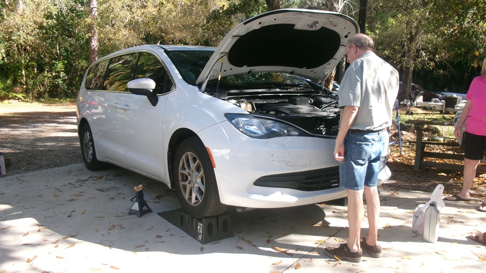 gear oil, and a grocery store for food supplies for the next couple of days. Jerry was changing oil in his diesel hauler truck, and trying to figure out how to reset the oil life reminder mileage (another modern computer car inconvenience that doesn't always work as expected). Then off to find WiFi and dinner before dark.