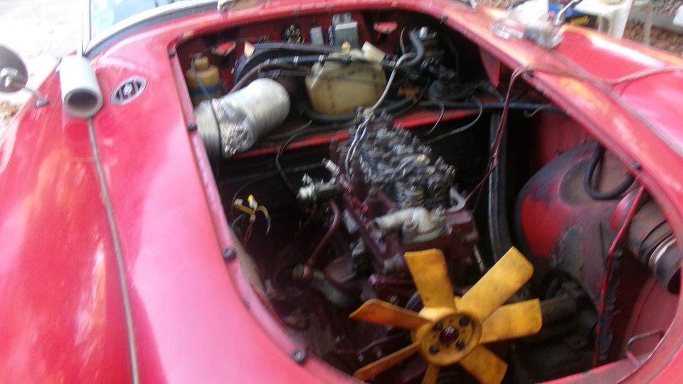 The rest was just chores to install the carburetors, distributor, alternator, radiator, fill with water and fire it up. That was almost on schedule, done by a few minutes after 4-pm. Peachy, put the bonnet on and be ready to roll. -- Unfortunately, not the end of the work day. We still had to disassemble the 1800 engine to get the bare block and cylinder head to the machine shop first thing tomorrow morning. Yeah, but disassembly is pretty easy, finished before 8-pm. Then we dropped the block and head into the trailer, packed up a bunch of tools and cleaned the place up a bit before jumping on a very late lunch,and then some WiFi time to post up these photos and notes.