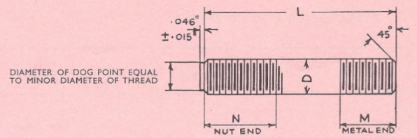 My significant challenge for today was to resolve the last part number on my list of Threaded Studs used in MGA cars. This one was AHH5805 Stud, used to secure the fuel pump to its mounting bracket in the MGA Twin Cam (and "Deluxe") cars. The special drawing number was required due to an odd combination of threads. The base end screwing into the fuel pump housing has 5/16-22-BSF thread (pre-war hold-over design),while the exposed end has 5/16-24-UNF thread for a post-war hex nut. Go ahead and tear your hair out. I'm still missing the length of a few of the studs, but at least I have the tech pages up for all of them.