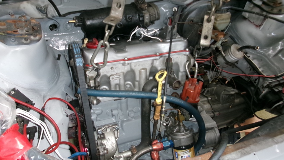 Navigator and i got busy changing our battery ground cable, long time overdue. It became more urgent a day or two ago when the car wouldn't start without aid of a small jumper box. Jerry was making good progress on the Sirocco engine, getting close to race ready again.